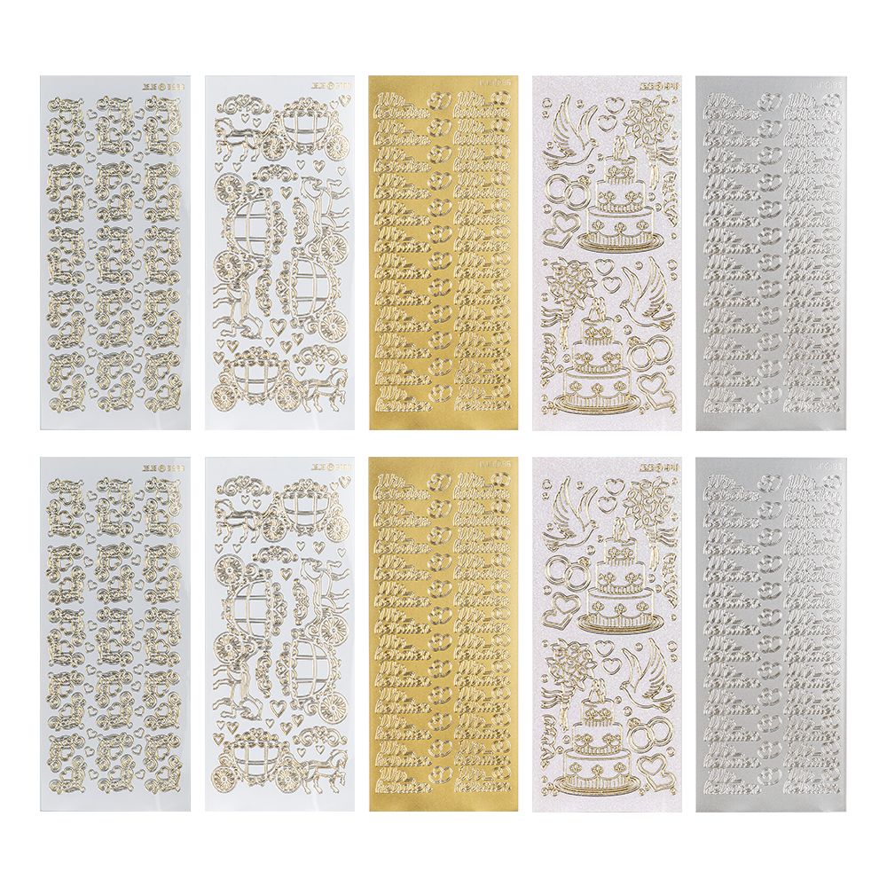 Sticker, Hochzeit 1, Perlmutt- und Lackfolie, 5 verschiedene Designs, 10 Bogen