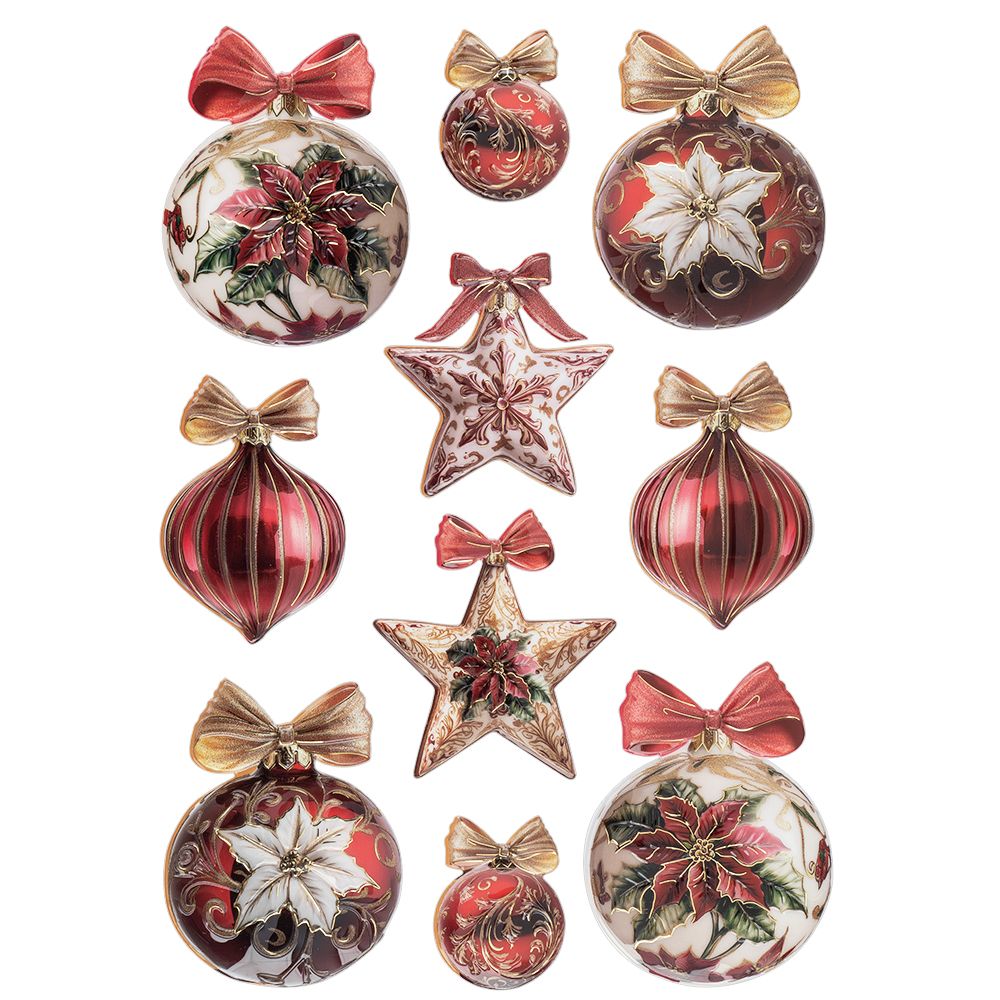 3-D Relief-Sticker, Porzellan-Optik, mit Folienveredelung in Hellgold, Weihnachtsschmuck &... mehr