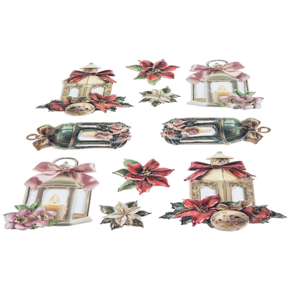 Produktinformationen "3-D Relief-Sticker, Porzellan-Optik, Weihnachtsschmuck & Laternen, versch. Größen, 5 Bogen"