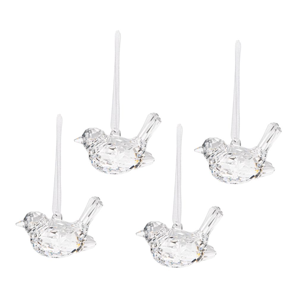 4 Kristall-Vögel, facettiert, klar, 3,3 cm x 3,6 cm x 5,8 cm, inkl. Organzaband zum Aufhängen