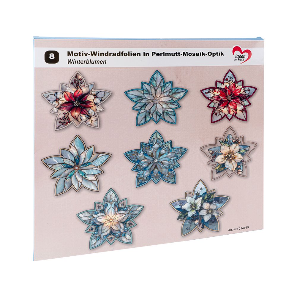 8 hochwertige Motiv-Windradfolien in Perlmutt-Mosaik-Optik, Winterblumen, 28cm x 26,5cm, 500µ, 8 Designs