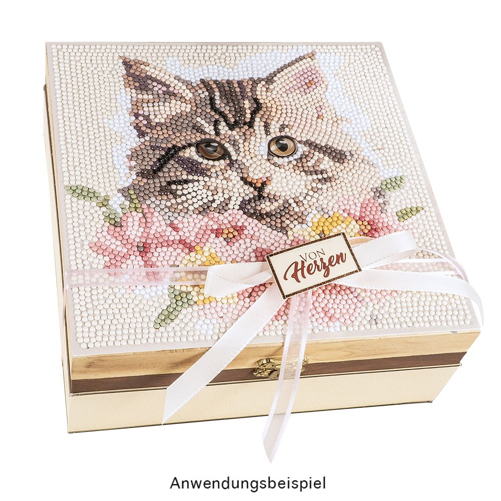 Diamond-Painting-Bild, Katze mit Blüten, 30cm x 30cm, inkl. Werkzeug