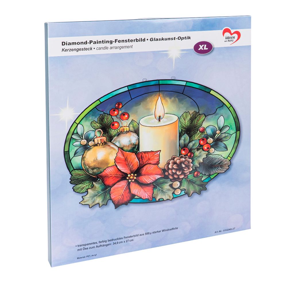 Produktinformationen "Diamond-Painting-Fensterbild, Glaskunst-Optik XL, Kerzengesteck, 34,6cm x 27cm, 500µ"
