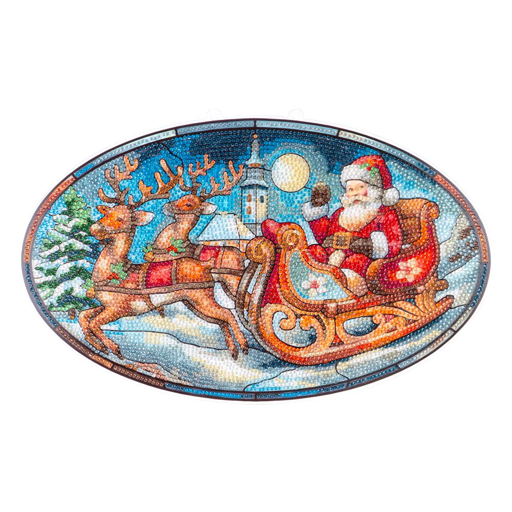 Produktinformationen "Diamond-Painting-Fensterbild, Glaskunst-Optik XL, Weihnachtsmann im Schlitten, 35,4cm x 22,4cm, 500µ"