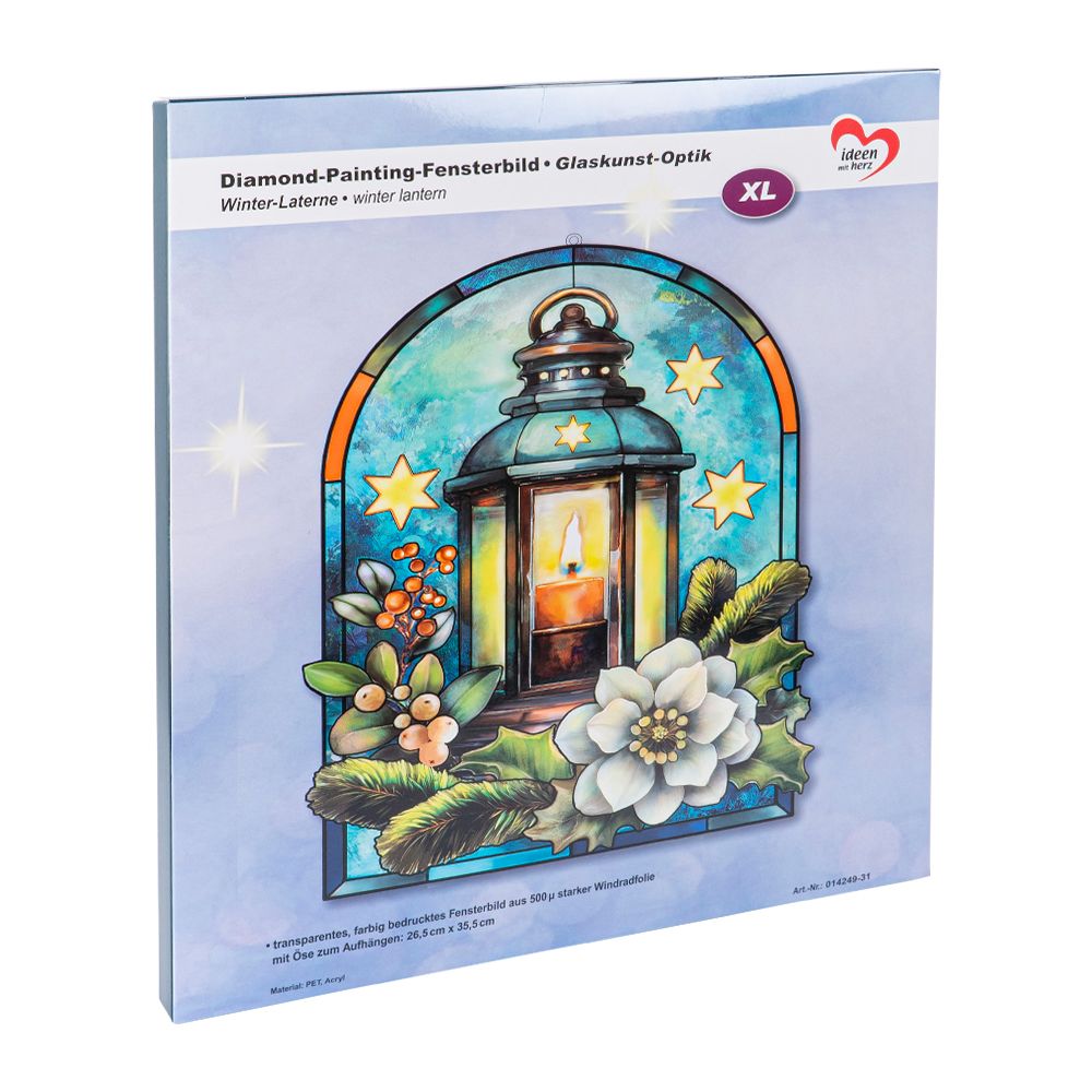 Diamond-Painting-Fensterbild, Glaskunst-Optik XL, Winter-Laterne, 26,5 cm x 35,5 cm, 500µ, inklusive transparenter Steine und Legevorlage.