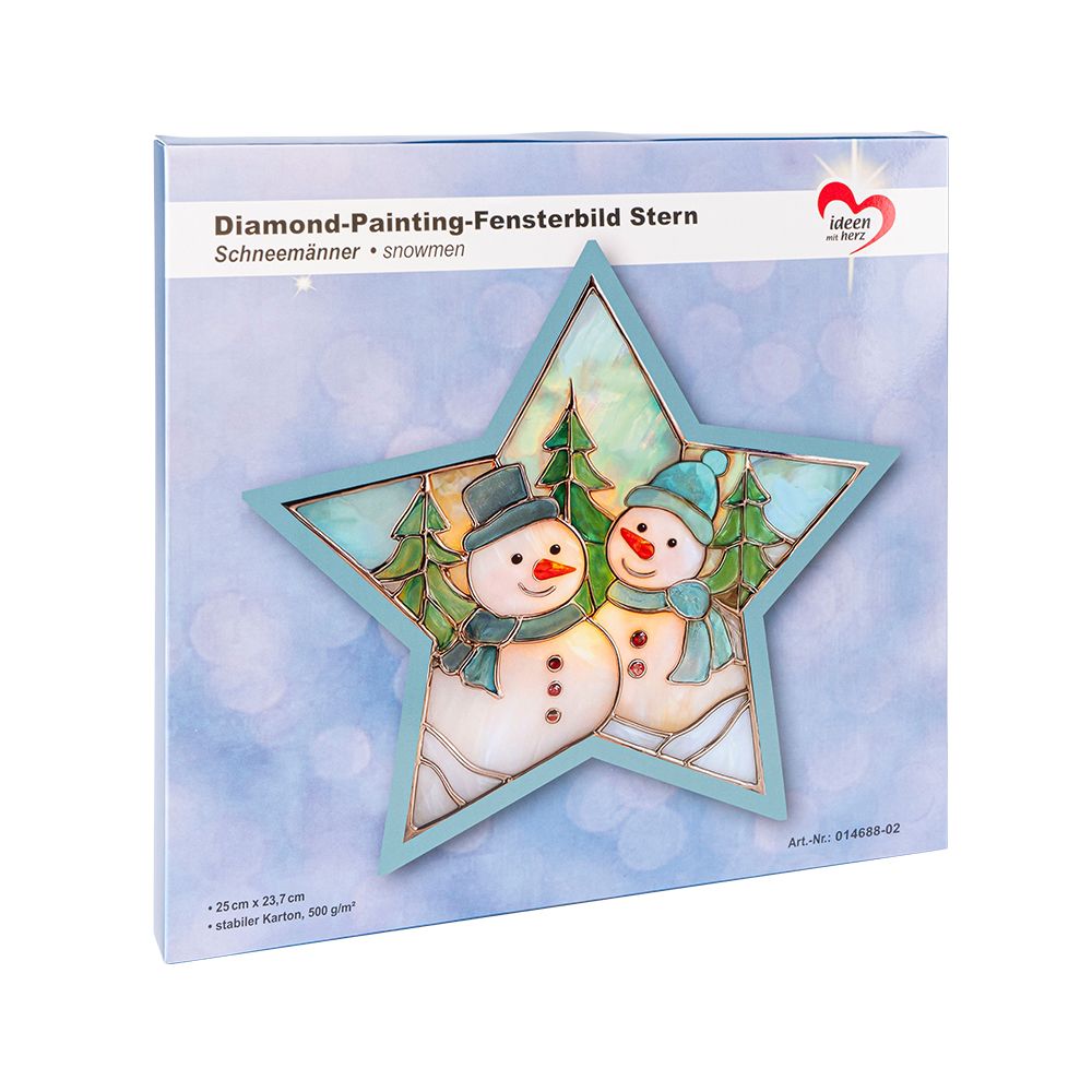 Produktinformationen "Diamond-Painting-Fensterbild, Stern, Schneemänner, 500g/m², doppelseitig"