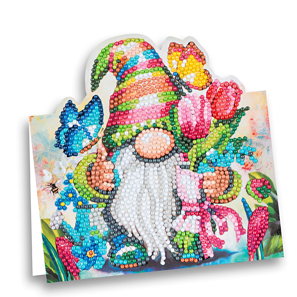 Diamond-Painting-Grußkarte, Wichtel im Garten, 11,5cm x 16,5cm, inkl. Zubehör