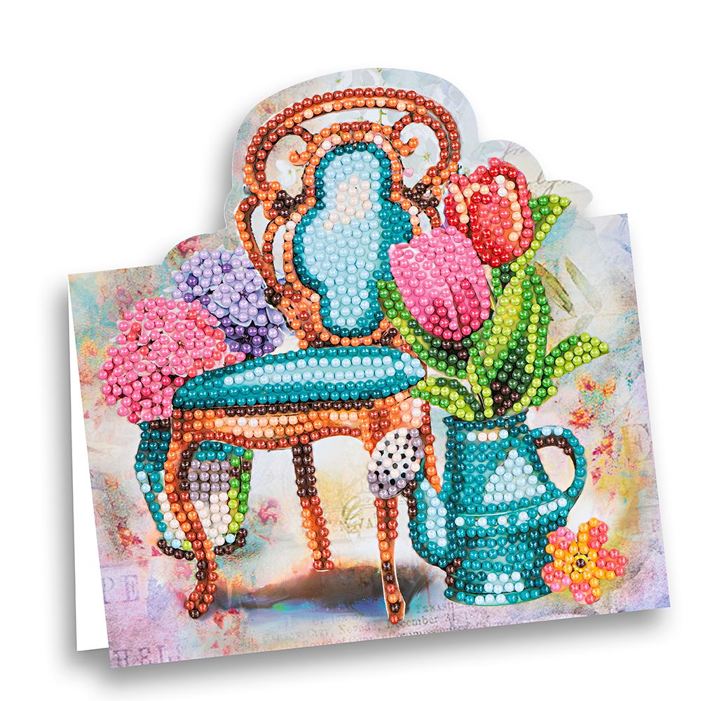 Diamond-Painting-Aufstellkarte, Gießkanne mit Blumen, 16,3cm x 16cm, inkl. Zubehör