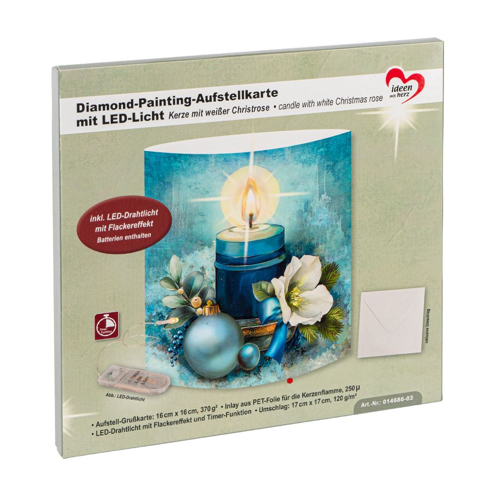 Diamond-Painting-Aufstellkarte mit LED-Licht, Kerze mit weißer Christrose, inkl. Timer
