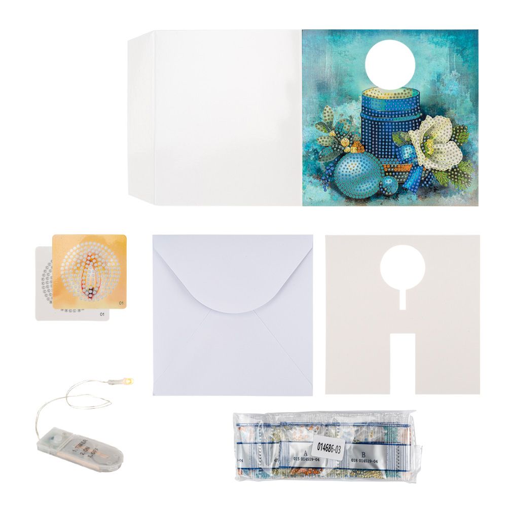 Diamond-Painting-Grußkarte, Strass, Kerze & Weihnachtskugeln 3, 16cm x 16cm, inkl. Zubehör