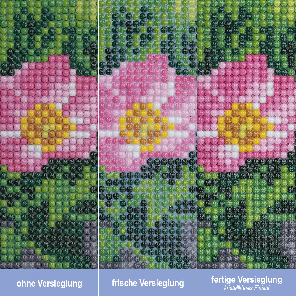 Diamond-Painting-Premium-Versiegler zum Fixieren, Verbinden und Versiegeln von Diamond Paintings, Strassmotiven, Puzzles u.v.m. Mit diesem extrem ergiebigen Medium zaubern Sie eine streifenfreie, schmutzabweisende und glanzvolle Oberfläche, auf der alle Einzelteile fest sitzen und nicht mehr verrutschen können.