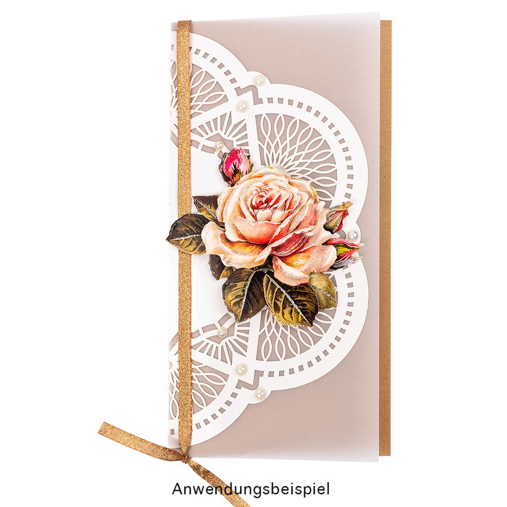 Laser-Kartenaufleger, Zierdeckchen, Ornament 14, 14cm x 11,2cm, 220 g/m², 5 Farbtöne, 20 Stück