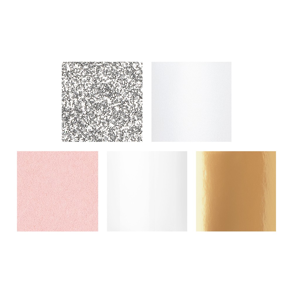 10 aufwändige XL-Laser-Ornamente, Zierdeckchen 11, Ø jeweils ca. 20 cm, jeweils 2 Ornamente in Spiegel-Gold, Samt-Rosa, Glitzer-Silber, Glossy-Weiß und Perlmutt-Weiß.