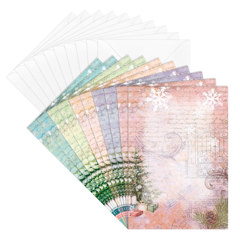 Versenden Sie mit diesen wunderschönen Karten im Vintage-Stil individuelle Weihnachtsgrüße an Ihre Lieben. Im Set enthalten sind zehn Karten mit einer Grammatur von 230 g/m², die mit nostalgischen Weihnachtsmotiven in fünf unterschiedlichen Farbwelten bedruckt sind. Dazu passende Umschläge mit einer Grammatur von 120 g/m² sind ebenfalls enthalten, sodass Sie Ihre Grüße gleich verschicken können. Gestalten Sie die Karten ganz nach Ihrem Geschmack und veredeln Sie sie mit 3-D Motiven, Stickern oder Floristik. Ihrer Kreativität sind keine Grenzen gesetzt!