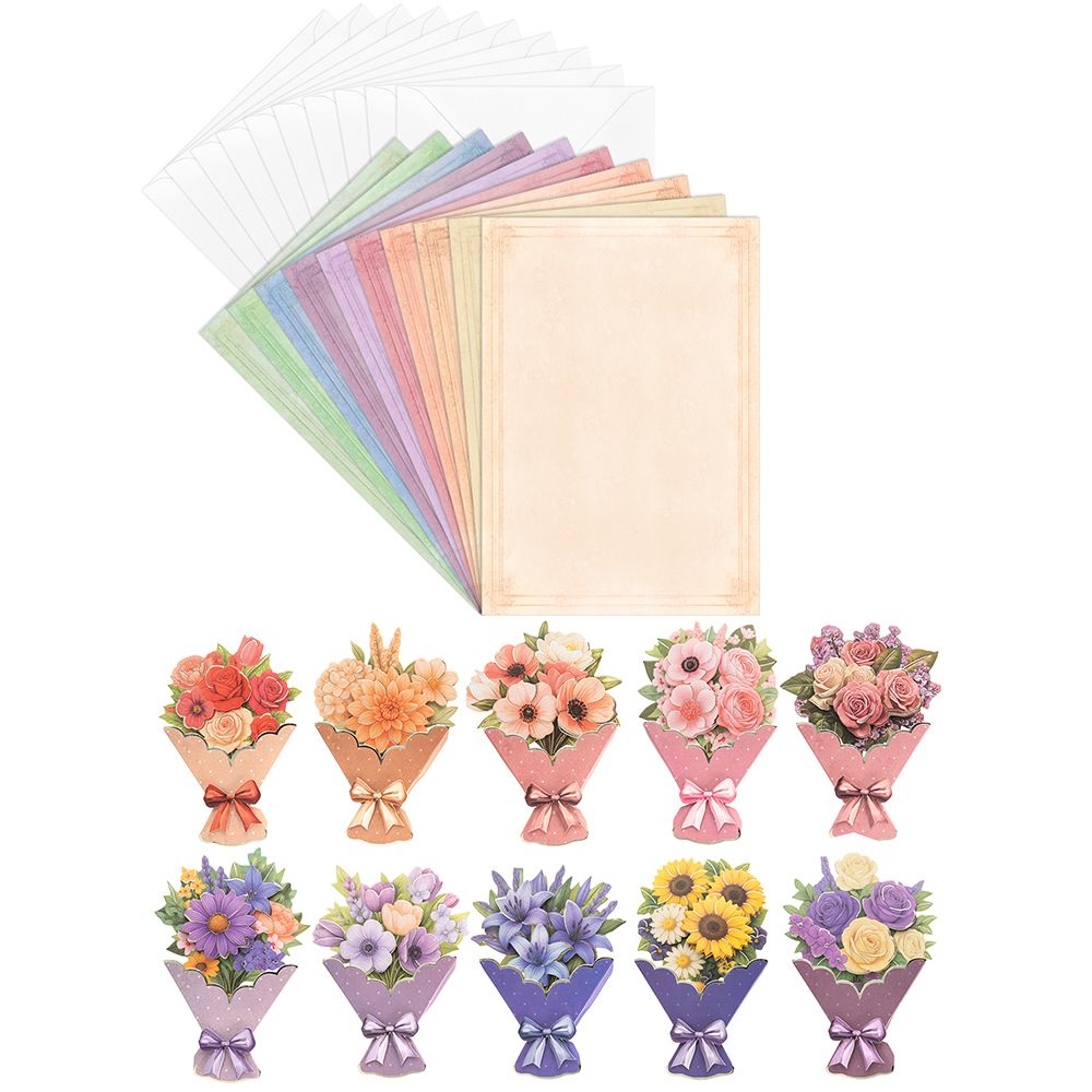 Motiv-Grußkarten, Blumen, 16cm x 16cm, 5 Designs, inkl. Umschläge, 10 Stück