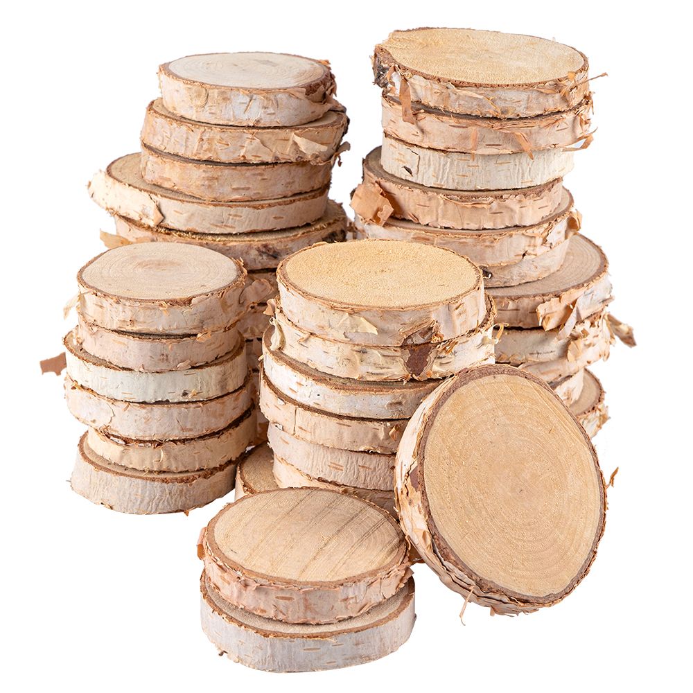Natürliche Birkenholzscheiben mit Rinde, Ø 3 cm - 6 cm, 0,7 cm stark, 240 g