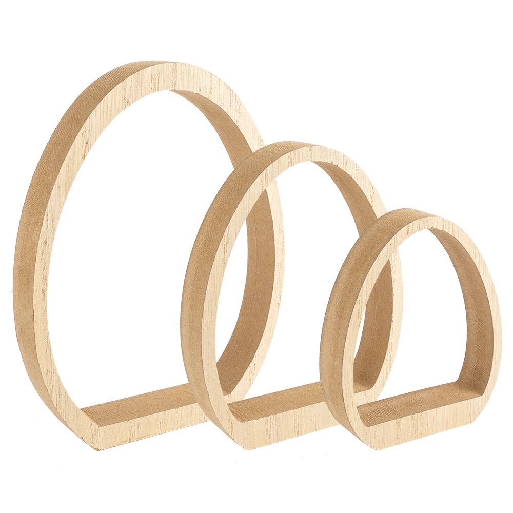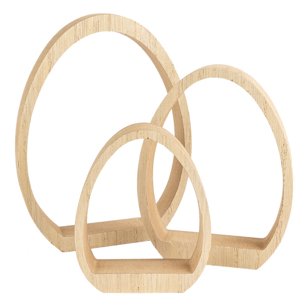 Deko-Ei aus Holz zum Aufstellen, Design 3, 30cm x 23,3cm, mit eiförmiger Aussparung & Podest