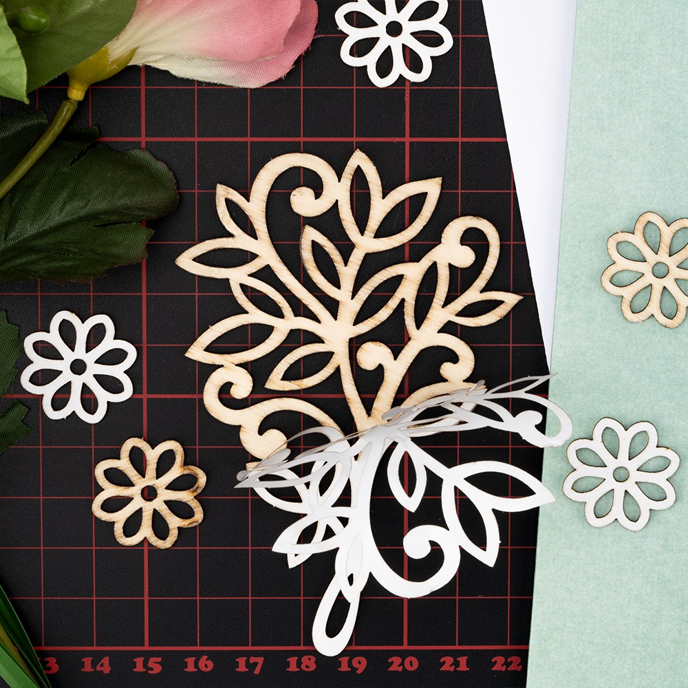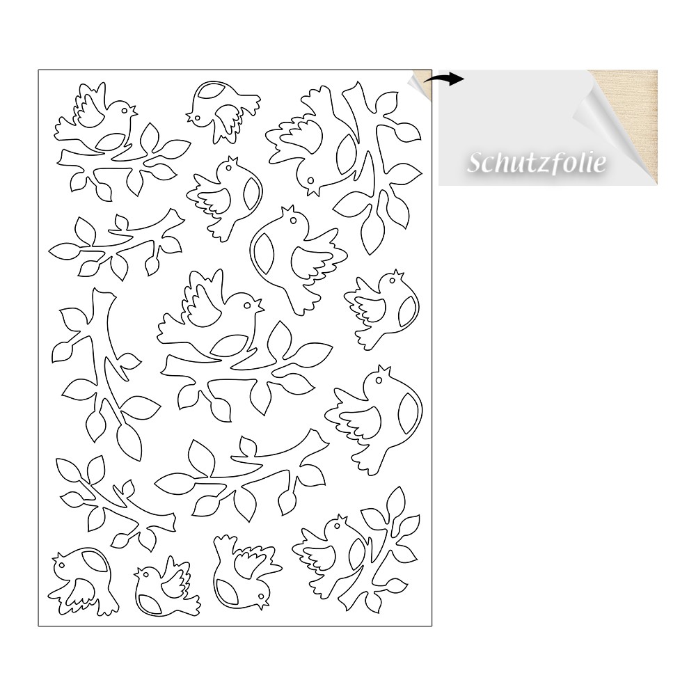 Holz-Laserbogen, Wünsche & Ornamentik, DIN A4, beidseitig klebend, 2,5mm stark, 5 Bogen