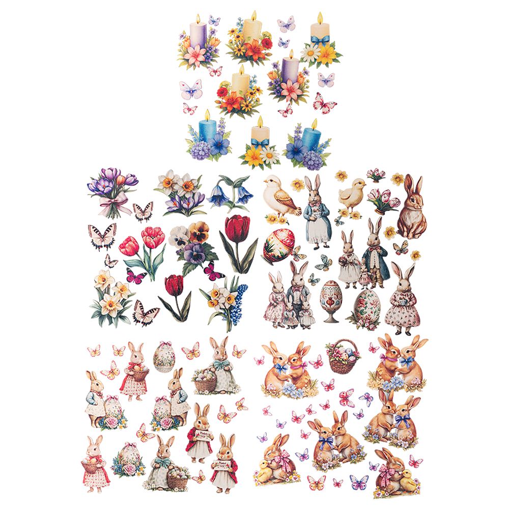 Transparent-Stickerbogen, Ostergrüße, verschiedene Designs, 10cm x 30cm, 10 Bogen