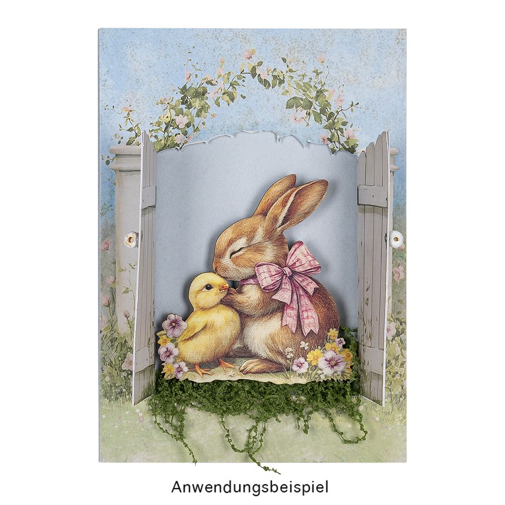 Stanzbogen, Osterhäschen-Schachtel, DIN A4, 5 versch. Farben, Veredelung, 10 Bogen