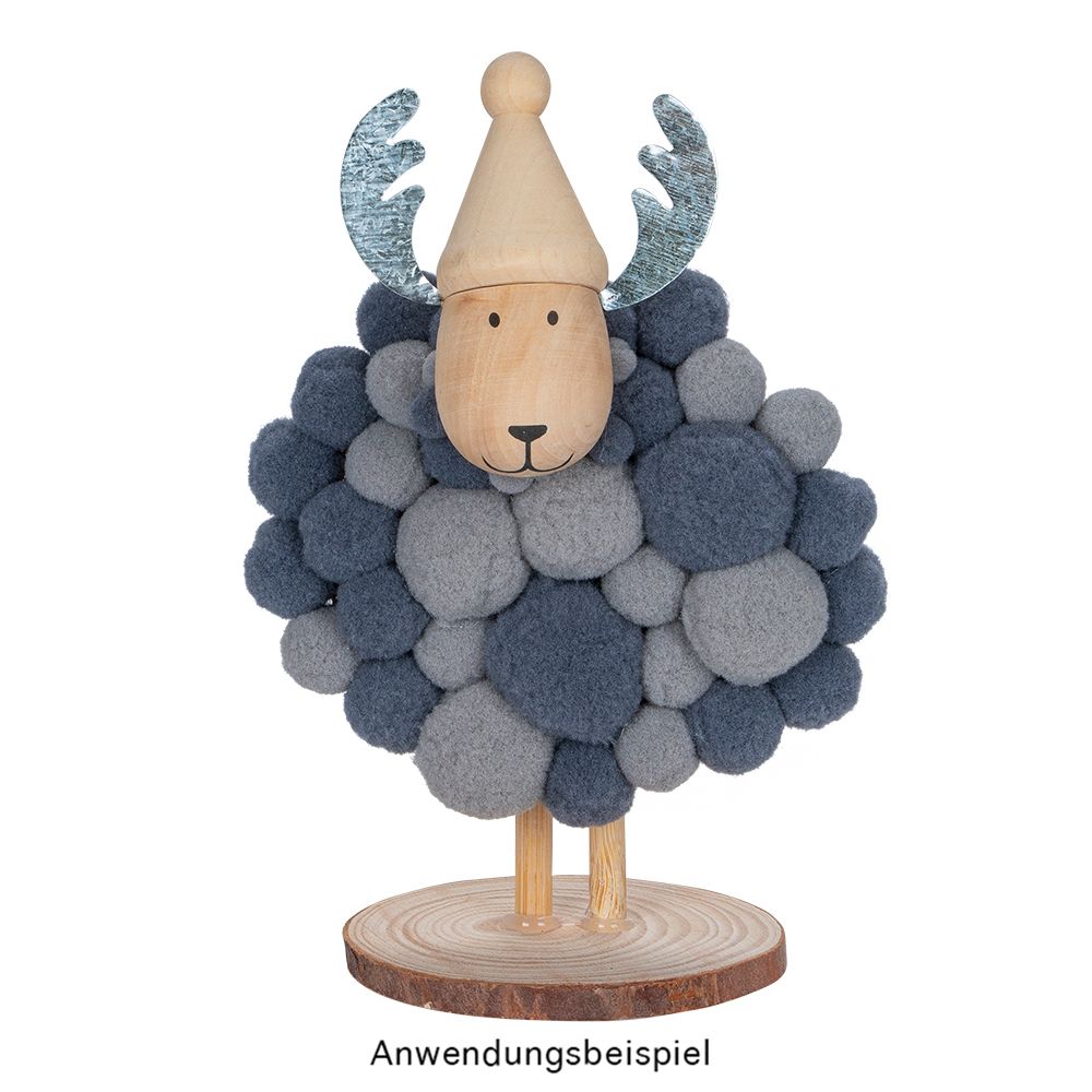 Kleben Sie ganz einfach die Holzköpfe auf die Fell-Pompons und im Handumdrehen sind die putzigen Rentier fertig! Zur Befestigung empfehlen wir die Verwendung von Heißkleber. Wenn sie mögen, können Sie die Rentiere noch weiter verzieren. Gestalten Sie zum Beispiel Beine aus Filz oder Holz-Perlen. Oder schmücken Sie eine Rentier-Dame mit einer kleinen Perlenkette und einer Mini-Schleife am Geweih. Ihrer Kreativität sind keine Grenzen gesetzt!