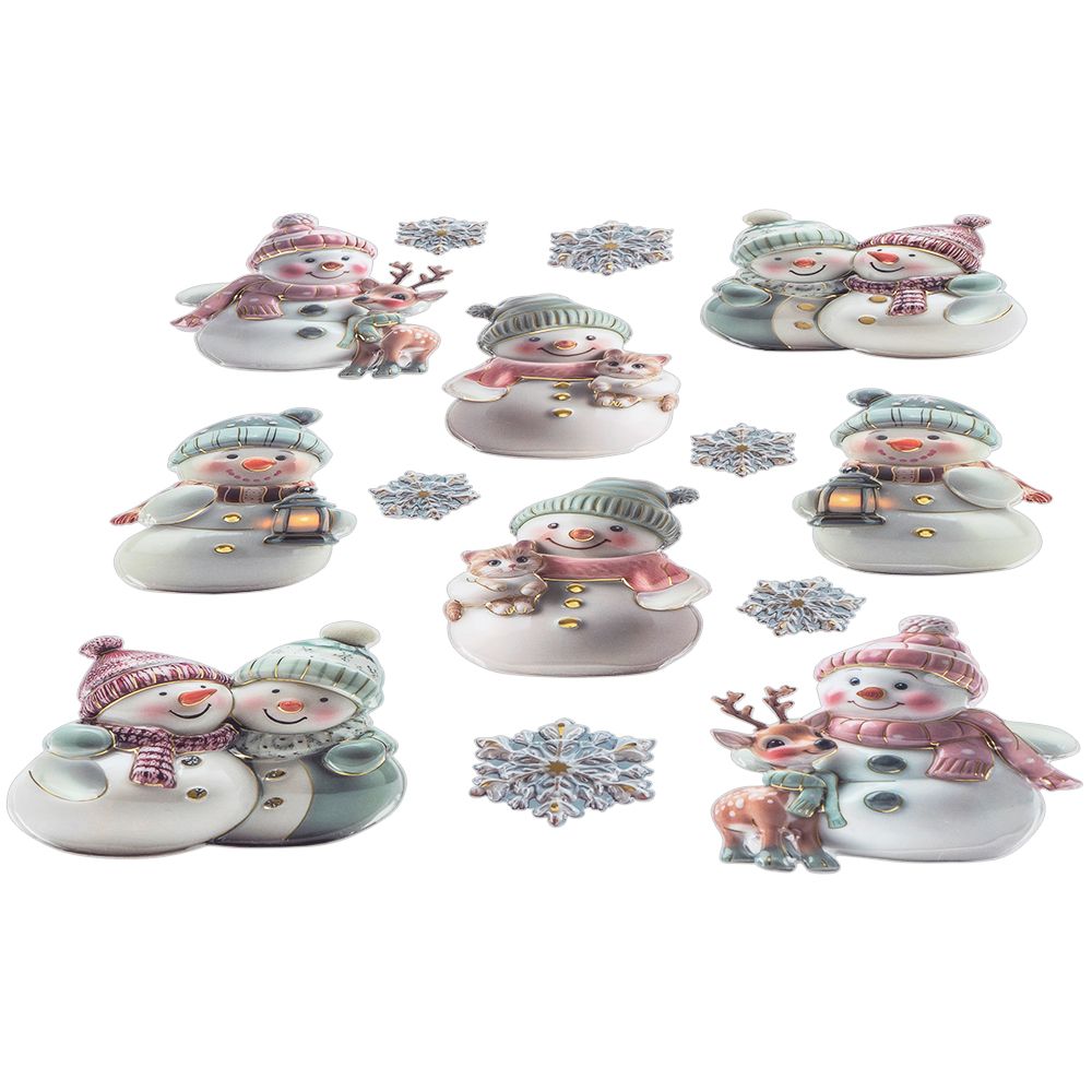 Produktinformationen "3-D Relief-Sticker, Porzellan-Optik, Weihnachtsfloristik & Schneemänner, versch. Größen, 5 Bogen"