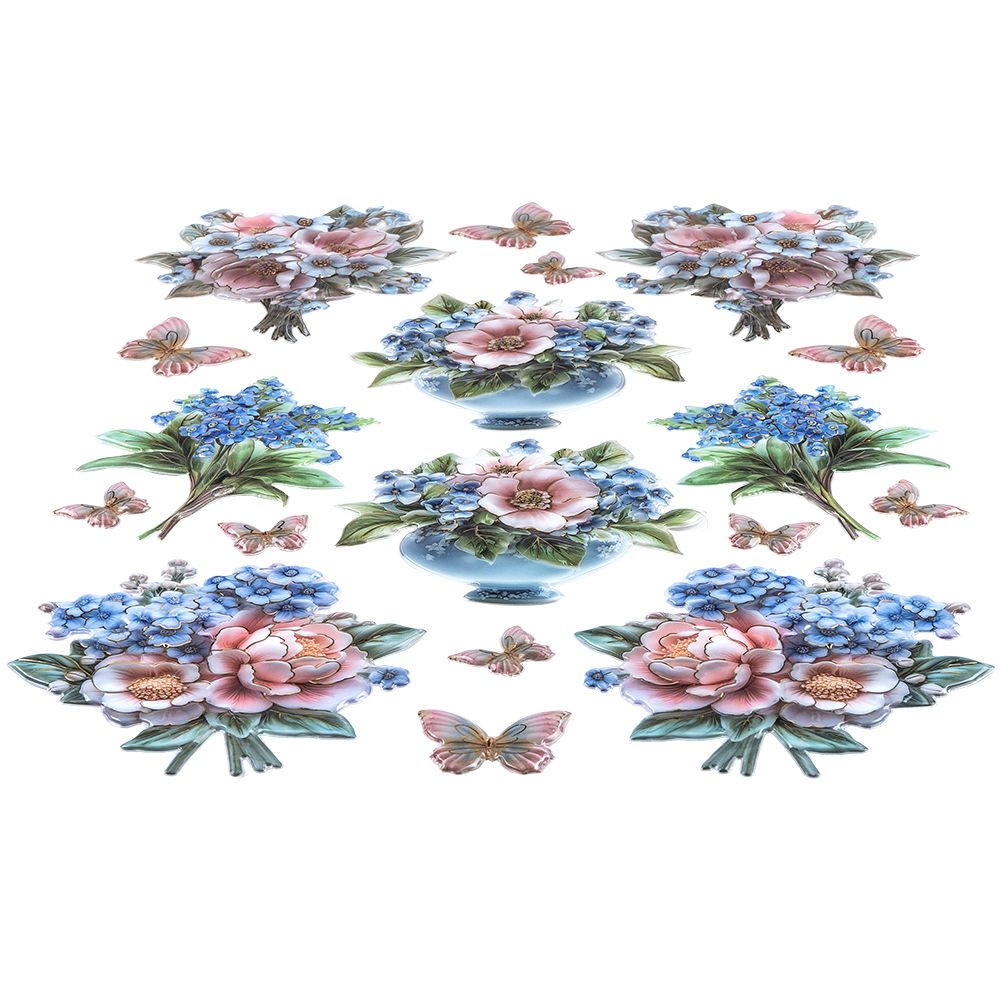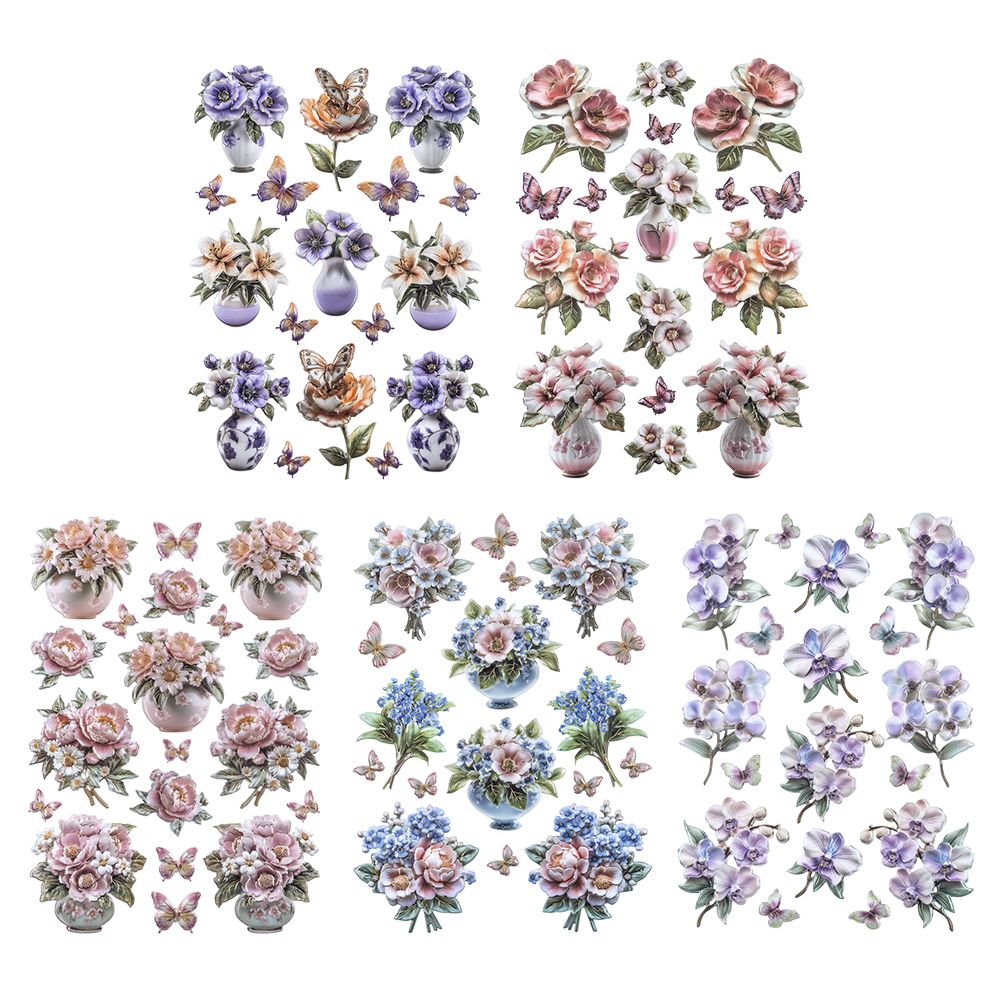 3-D Relief-Sticker, Porzellan-Optik, Blumenvielfalt, versch. Größen, 5 Bogen