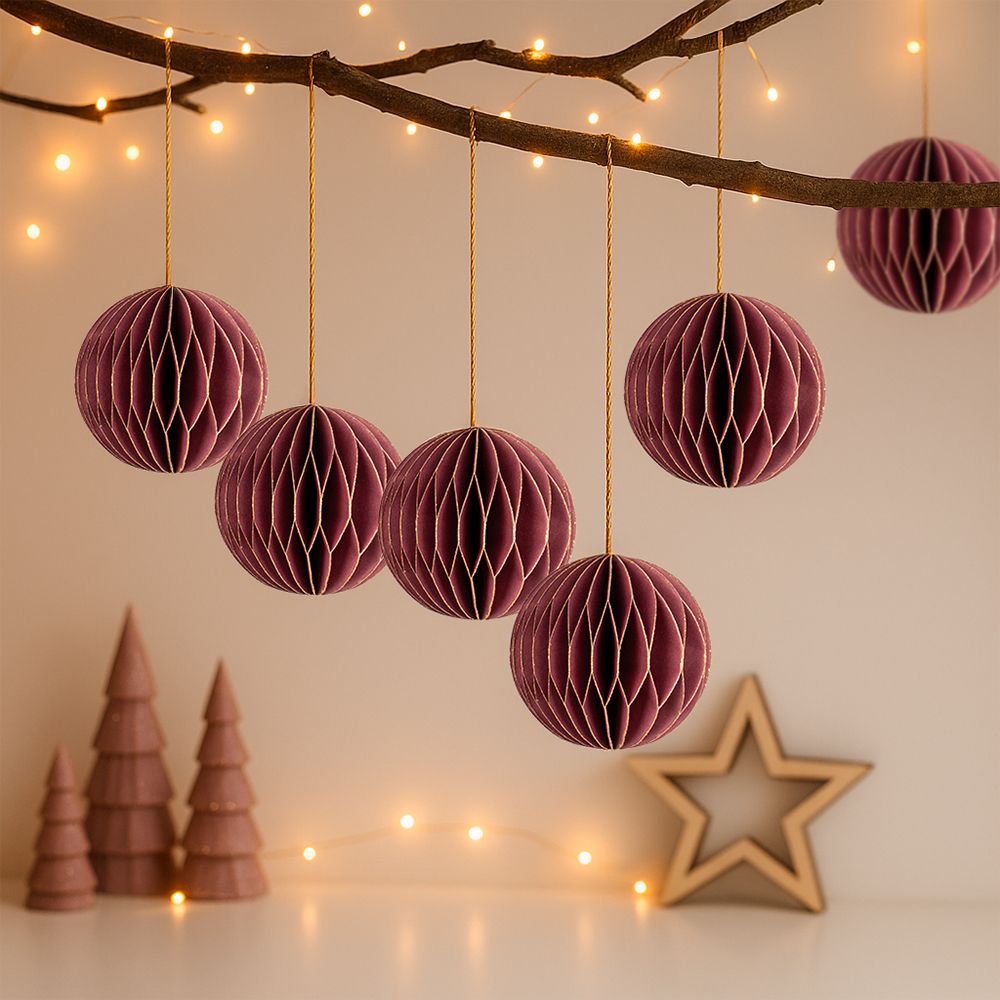 Verleihen Sie Ihrer Deko einen Hauch von Eleganz! Diese stilvollen Waben-Kugeln in Dunkelrot mit feinem goldenem Rand sind die perfekte Wahl für festliche Anlässe, stilvolle Wohnräume oder kreative Bastelprojekte. Dank ihres praktischen Magnetverschlusses lassen sich die Kugeln im Handumdrehen öffnen und wieder flach zusammenlegen – ideal für eine platzsparende Aufbewahrung. Mit dem integrierten Band können Sie die Wabenkugeln ganz einfach an Zweigen, Fenstern, Lampen oder Weihnachtsbäumen befestigen. Ob für Hochzeiten, Weihnachten, Geburtstage oder elegante Tischdekorationen – diese hochwertigen Papierkugeln sorgen überall für ein stimmungsvolles, festliches Ambiente.