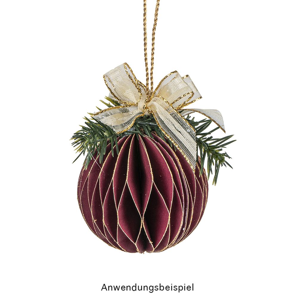 Kundenbewertungen für "Waben-Kugeln, zum Aufhängen, Ø5cm, dunkelrot mit goldenem Rand, 6 Stück"