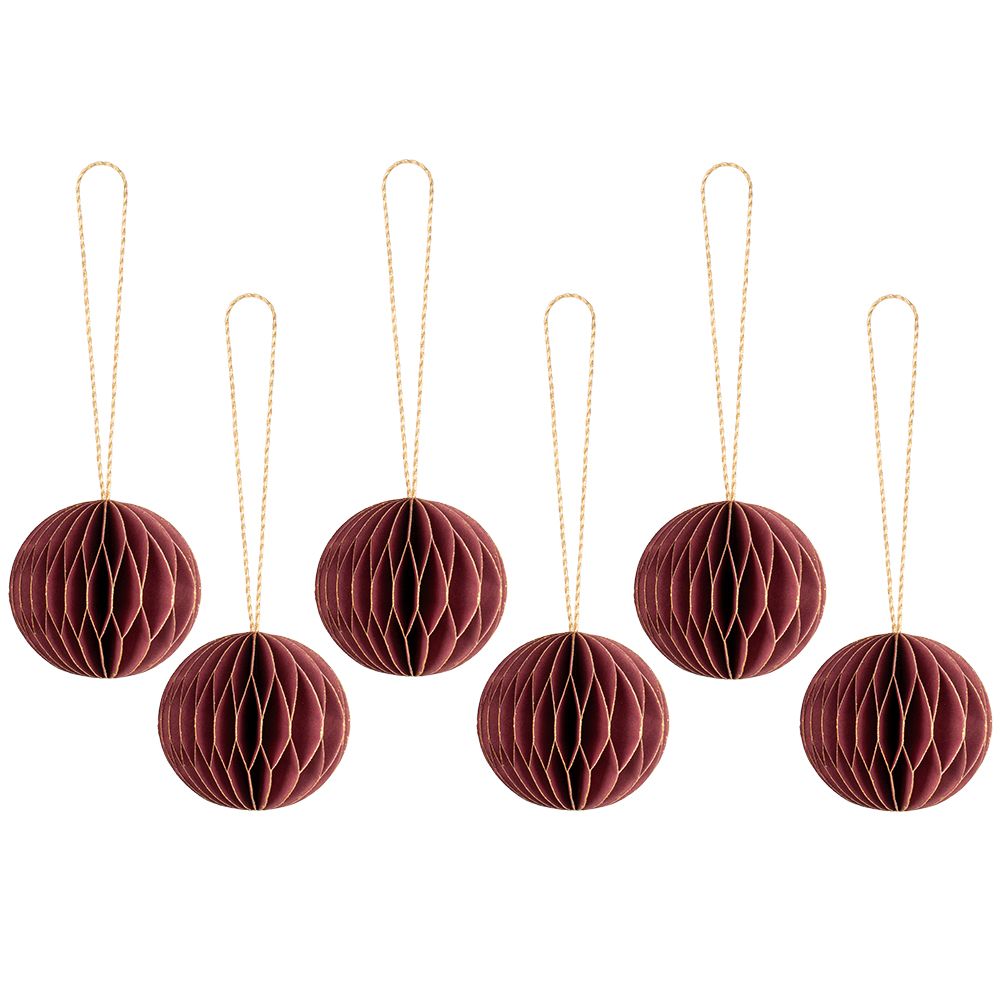 6 hochwertige Waben-Kugeln, zum Aufhängen, Ø 5 cm, dunkelrot mit goldenem Rand