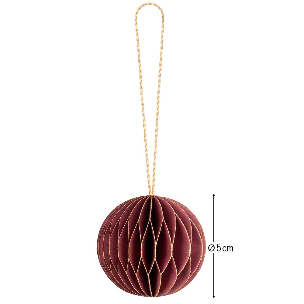 Waben-Kugeln, zum Aufhängen, Ø5cm, dunkelrot mit goldenem Rand, 6 Stück