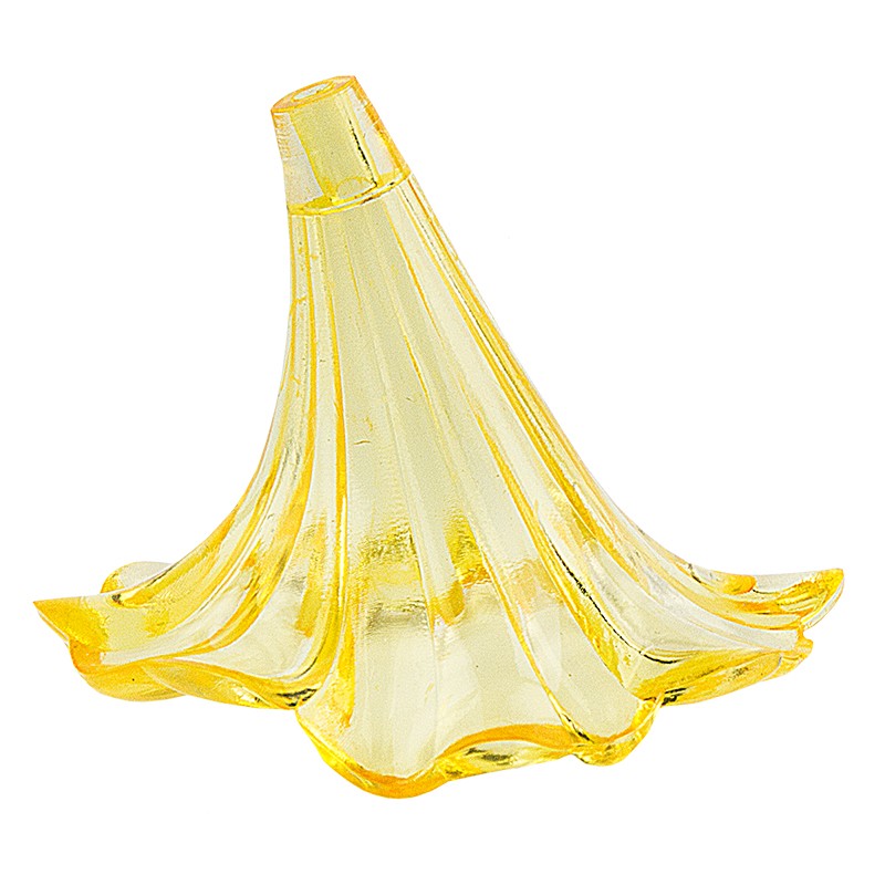 10 Blütenkelche mit Loch (Ø ca. 1,5 mm) zum Auffädeln, ca. 3,9 cm x 3 cm breit, ca. 3,4 cm hoch, goldgelb.