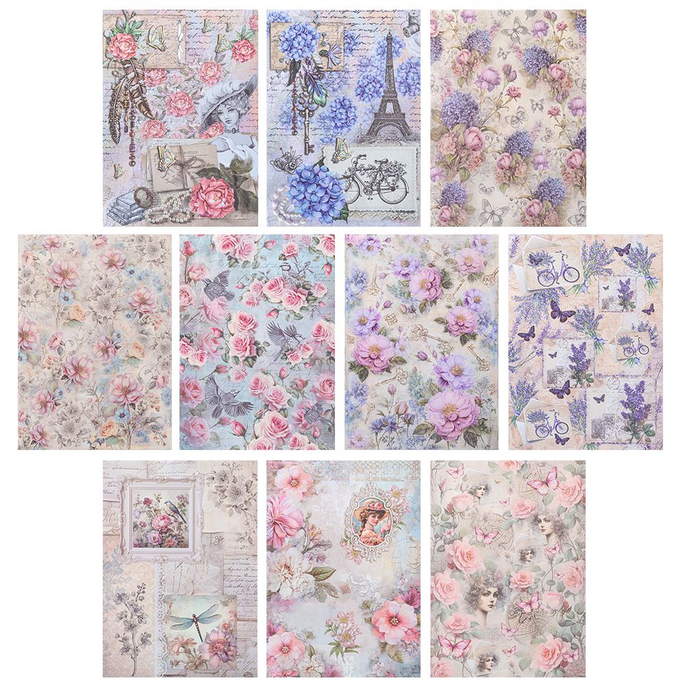 Selbstklebende Stoffe, Vintage-Blumen, DIN A4, verschiedene Designs, 10 Stück