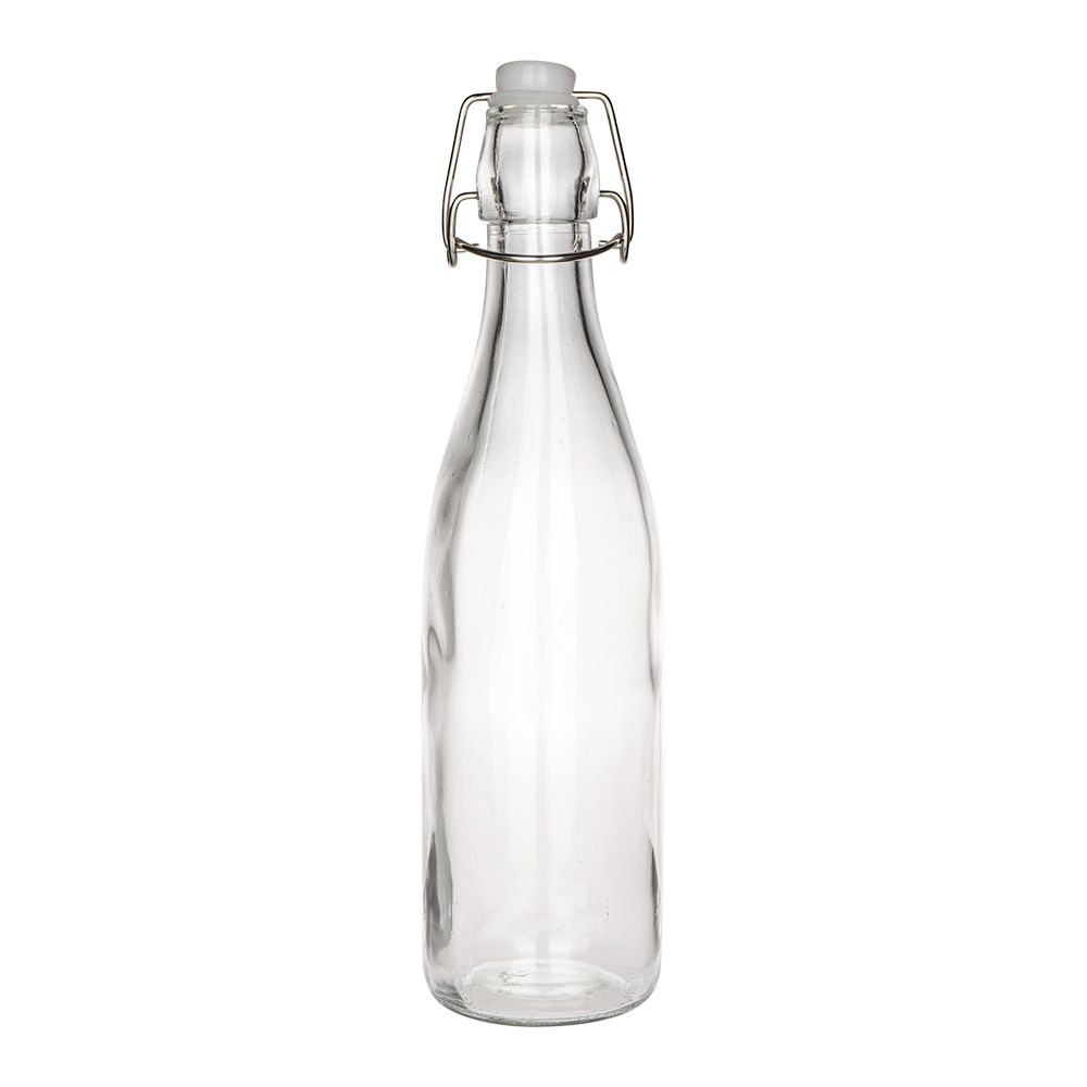 Glasflasche, rund, mit Bügelverschluss, Ø 7 cm, 27,3 cm hoch, Füllmenge: 520 ml, transparent, lebensmittelecht