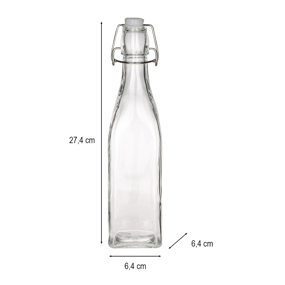 Produktinformationen "Glasflasche, viereckig, mit Bügelverschluss, 6,4cm x 6,4cm, 27,4cm hoch, Füllmenge: 550ml"