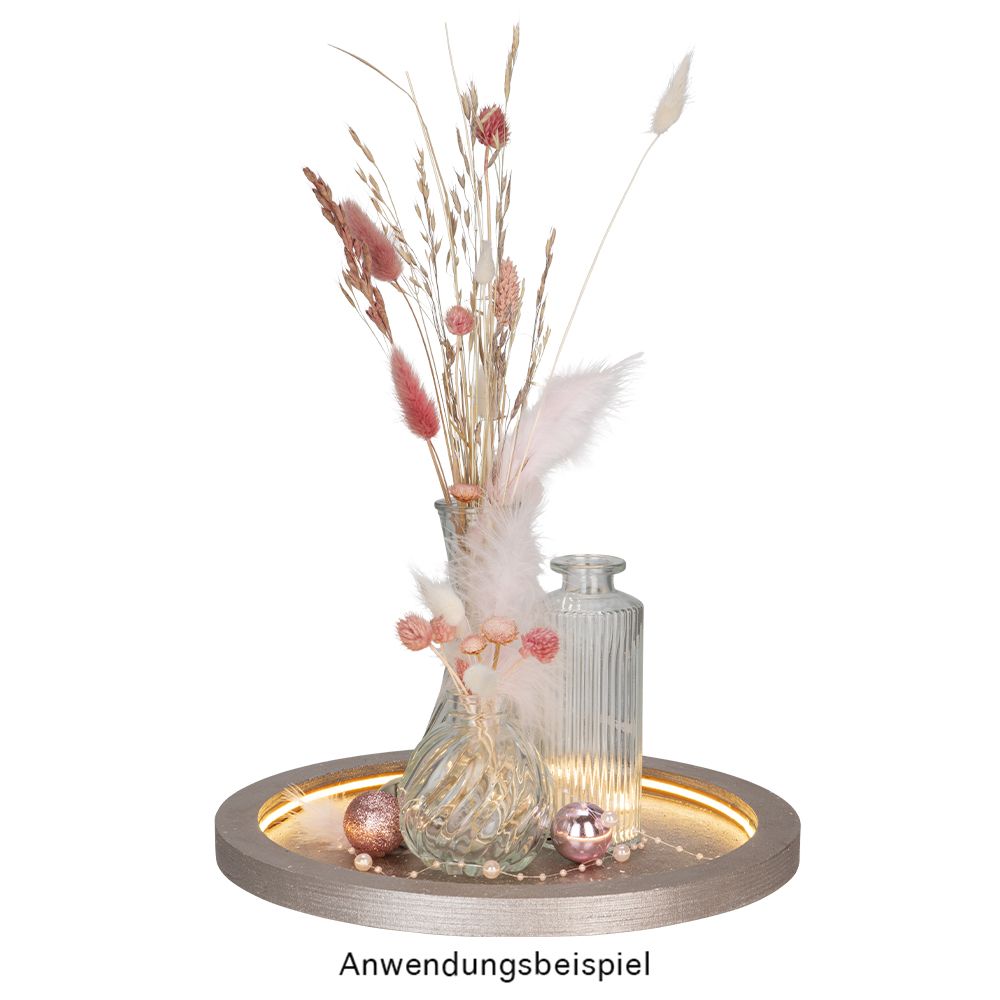 mit verschiedenen Materialien weiterverziert werden. Kleben Sie zum Beispiel Schmucksteine und Sticker darauf oder veredeln Sie sie mit dekorativen Reispapieren. Die runden Holzrahmen bieten sich besonders gut für die Pouring-Technik an. Für besonderen Glanz können Sie zusätzlich einen Lack auftragen.