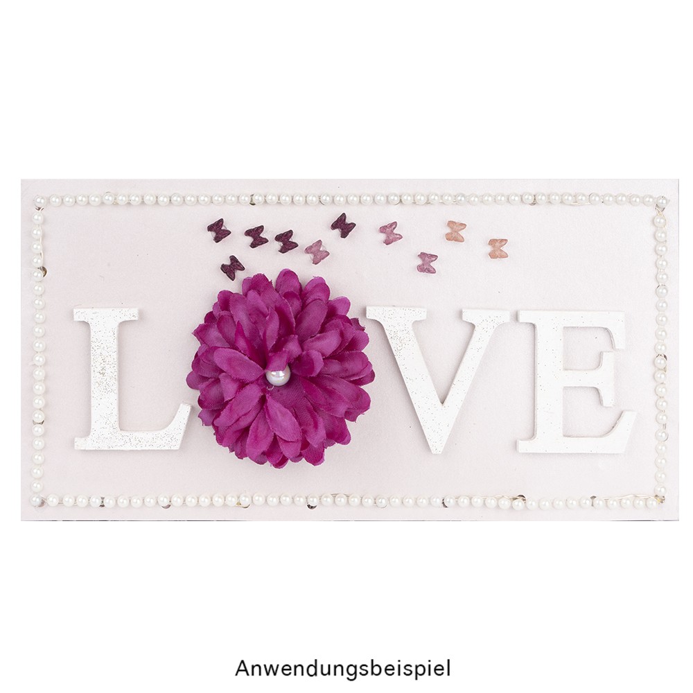 Setzen Sie mit den Miniatur-Schmuckstein-Schmetterlingen zauberhafte Akzente auf Ihren Bastelarbeiten. Die nur etwa 0,6 cm großen Schmucksteine eignen sich ideal für die Grußkartengestaltung, aber auch andere Dinge wie zum Beispiel Lesezeichen, Tischkärtchen, Geschenkverpackungen oder Teelichthalter können damit wunderbar verziert werden. Mit ihrer zarten Farbigkeit sorgen die transparenten Schmetterlinge für einen Hauch von Eleganz und verleihen Ihren Projekten das gewisse Etwas.
