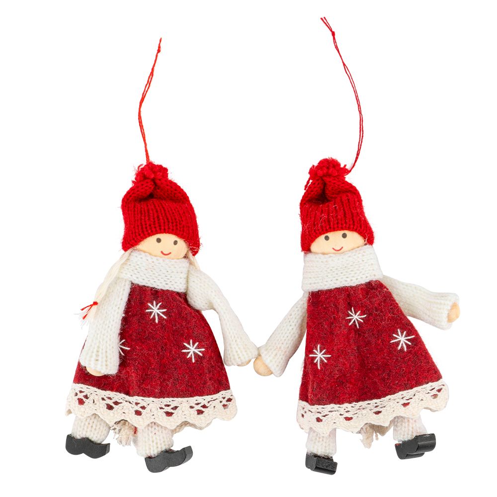 2 niedliche Winter-Püppchen, Madita & Torben, 9,5 cm x 3 cm x 14,5 cm, rot/creme