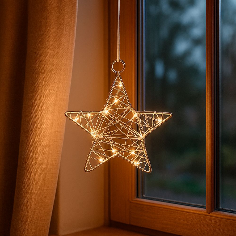 LED-Drahtstern, Ø24cm, 20 LED-Lichter in Warmweiß, inkl. Timer-Funktion