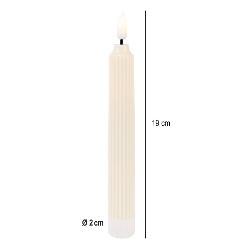 Produktinformationen "LED-Stabkerzen, creme, Ø2cm, 19cm hoch, LED in warmweiß, mit Flacker-Effekt und Timer, 2 Stück"
