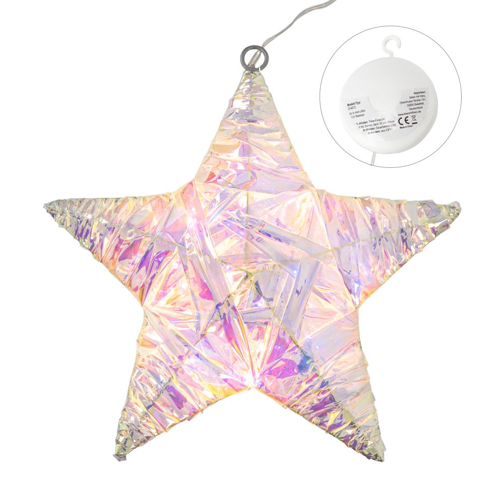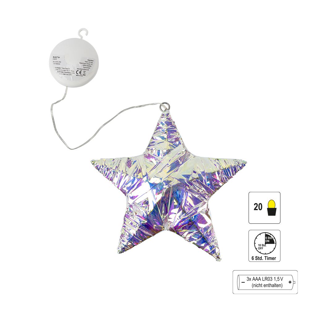 Produktinformationen "3-D LED-Stern mit irisierender Folie, 21,5cm x 20cm x 4cm, 20 LEDs, Warmweiß, mit Timer"