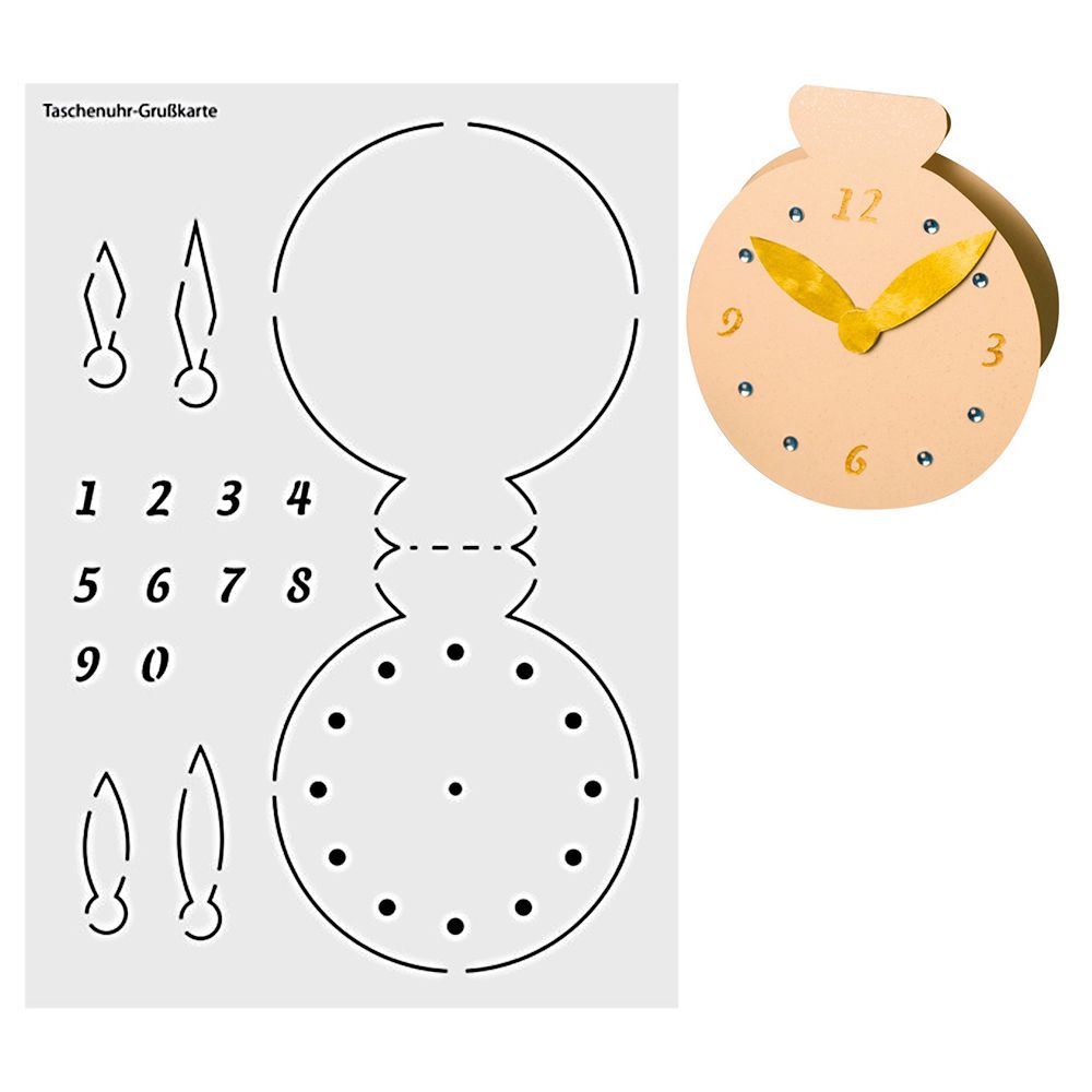 Produktinformationen "Design-Schablone Nr. 10 "Taschenuhr-Grußkarte", DIN A4"